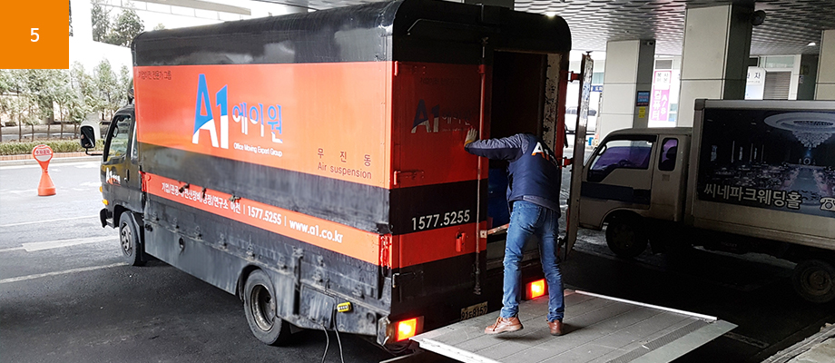 물품량, 작업환경에 따라 1톤,2.5톤,5톤 중 차량선택
