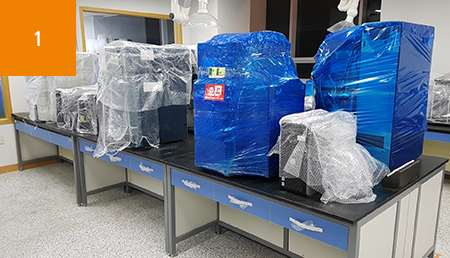 도착지 도면기준 연구장비/실험기자재 정위치에 반입작업
